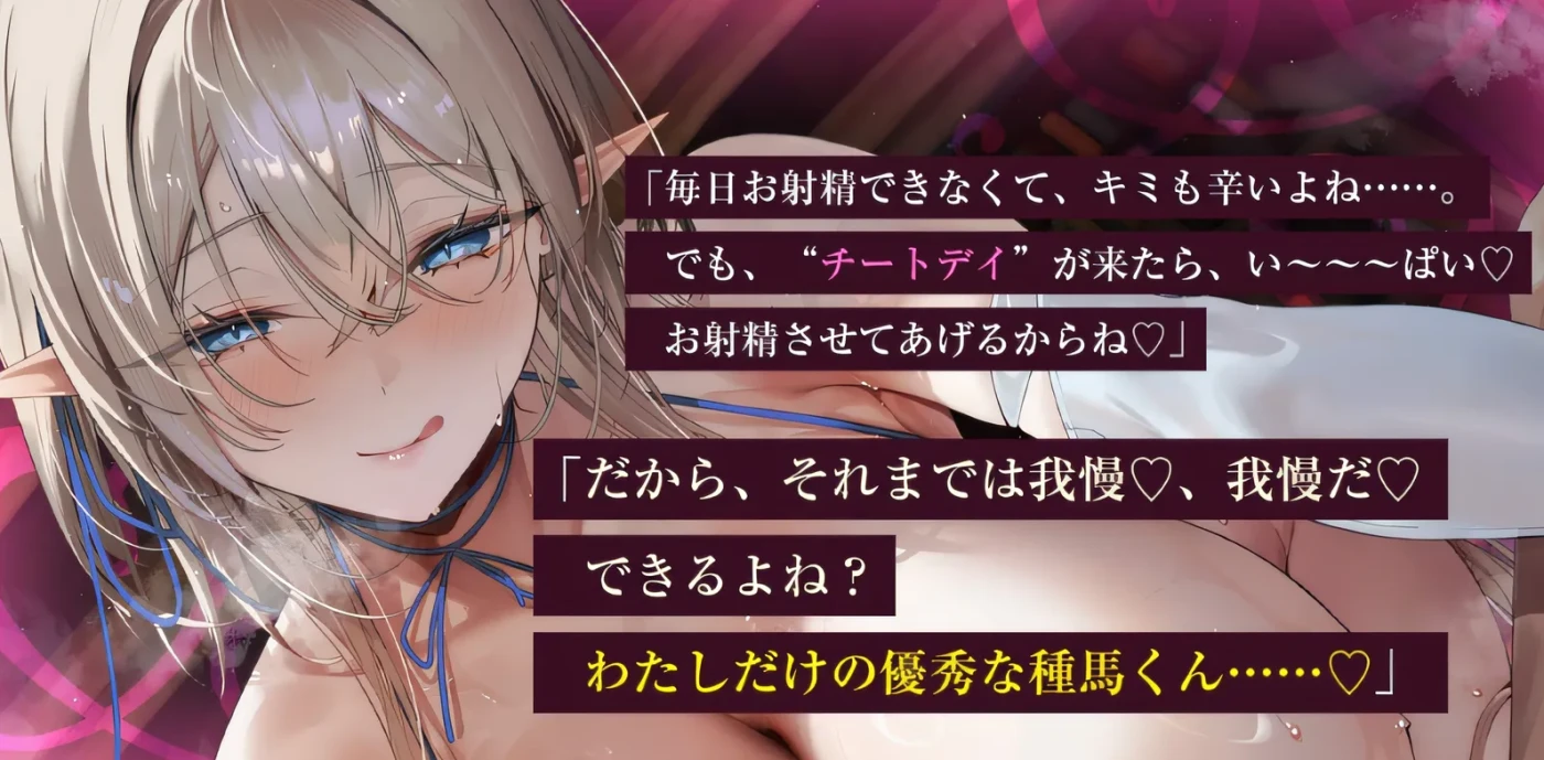作品介绍充满爱意的“等等”又回来了!经过一段时间的禁欲训练(射精管理)后,终于到了尽情享受的放纵日 CV:相泽夏优★本作品属于“堕落俱乐部★LACK Premium系列” 音量比以往作品提升了约1.5倍 我们将以比以往更大的音量呈现 运用拟音技术打造逼真的音效,带您进入极致的快感世界 ●曲目介绍长达126分钟的音频,记录了与一位性欲旺盛的天才精灵的“禁欲训练”和“放纵日”的精彩瞬间 ·标题曲 (00:20) ·曲目1:平常的温柔性爱……或者说,本该如此……? (15:15) 【种马系统说明、舔耳、手淫、“等等”边缘指令、射精】 我被鸟鸣声唤醒,塞莱斯蒂拉正枕着胳膊睡在我旁边。 “早上好,种马。你看起来睡得很好。” “你似乎太投入了,以至于不知道我为什么睡在你旁边。” “嗯,这可以理解,我们昨天一整天都待在床上,你射了三次。” “然后,趁你睡着的时候,我用了你勃起的阴茎,让你射了两次……我想你可能不记得一半的事情了。” “对不起。精灵的耐力无穷无尽……”普通人跟不上,所以我小心翼翼的,不想让你精疲力竭。” 种马原本这个系统是为了“确保后代延续”,但她似乎完全沉迷于性爱 “多亏了我对你的悉心照料,你的阴茎变得非常强壮。 昨天它一整天都完全勃起,而且在被我挑逗着享受性爱的过程中,你竟然还能忍住不射。 干得好我的宝贝种马……拍拍它,拍拍它……还有你的阴茎,拍拍它,拍拍它……” 你醒来时,有人在你耳边低语着下流的话,抚摸着你的阴茎。 “今天我们再来点‘等待’,好吗?”你能做到吗,我可爱的小种马……” 伴着你晨勃的劲头,你今天的甜蜜训练又开始了 塞莱斯蒂拉舔着你的耳朵,一边用手帮你撸,一边说着“等等♡”。 她似乎不仅仅是在照顾你,更享受看到你痛苦的表情,像个又甜又坏的小种马一样戏弄你…… “你想射吗?你想射吗?还没到时候,等等,等等……呵呵,好吧” “看,出来这么多了。你的精液总是那么棒。这味道真是让人无法抗拒。” 当塞莱斯蒂拉舔舐着他的精液时,她注意到了一些奇怪的事情。 “嗯?……种马君。”你的精液是不是有点稀? ·第二段 - 训练篇 - 禁欲开始!持续甜蜜的挑逗,在即将达到高潮时停止,训练阴囊充血 (18:02) [不射精,主人清洁口交,舔阴囊增加精液,吮吸阴茎的吻,“等待”指令在即将达到高潮时停止,在即将达到高潮时停止的挑逗口交] “通常是这样的,像果冻一样颤巍巍的……嗯……” 通过清洁口交,塞莱斯蒂拉确认早晨的第一份精液不像往常那么浓稠。 “我明明看过所有关于种马君的手册,但我还是不明白。 在这种情况下,只有热爱人类的精灵才能……” “救命!” 就像第一次一样,我打电话来寻求建议, “昨天?五次……嗯……前天,我想是三次。 我的意思是,除了和你做爱和射在你里面之外,我一天还要射精三次。 你真是太可爱了,种马君。呵呵……什么?很多?……这很频繁啊!!?” 我惊讶地发现,作为一个人,我到现在为止的次数竟然这么多! 于是,我向他寻求建议。 “种马君,要不要我控制你的射精来帮助你的阴囊恢复?” “啊,好的。”所以……作弊日?……那是什么? 作弊日是指在连续几天进行边缘性行为后,直到阴囊充满精液才射精。 通过设置一个可以一次性多次射精的奖励日,你可以延长禁欲时间 “呵呵……原来如此,种马君。我逼你太紧了。对不起。 我们先来刺激你的阴茎和阴囊,促进精液分泌” 还有,主人有责任回收多余的精液” ·音轨3 - 训练部分 - 无射精、边缘性行为自慰辅助训练!一段调皮的自慰,他的主人用小号假阳具挑逗他的阴茎,让他达到高潮 (19:47) [无射精,互相抚摸,舔耳朵,互相自慰,阴茎折磨式自慰,在即将达到高潮时发出“等等”的指令] “今天,我想控制你的射精,让你的睾丸充满精液。 但如果只有你,这个种马,必须忍住,那不公平” 他建议他们也尝试自慰,同时努力不射精 他们紧紧相贴,互相抚摸对方的生殖器。 他们一边舔着对方的耳朵,一边评论着彼此的感觉,让对方听到自己的呻吟 “嗯,啊感觉太好了,我的腿都快要软了。 我会让你的舔耳朵的时候感觉真好 我想要你的鸡巴哈,嗯,呼,啊” 之后,塞莱斯蒂拉拿出一根小指大小的假阳具,在你面前自慰 “看看这个。我准备它来平衡你 现在我可以体验和你一样的耐力了。哈,我现在就想要,你强壮有力的鸡巴 我不要这么小的假阳具,我要你那根雄壮的鸡巴” ·第四首:第一个作弊日允许射精!她呻吟着,以贴身女牛仔式压在他身上,让他多次射精 (16:41) [贴身女牛仔式压压,贪婪地舔耳朵,贪婪地法式热吻,射精后仍不停地射精,并在高潮前发出“等等”的指令] 放纵日就要来了!! 从一开始,Celestira 就处于“发情”状态,你一醒来就被她压倒 “呼,呼!醒醒,种马!今天是期待已久的放纵日,太好了! 我等这一天等了好久了!!嗯,呼” 他贪婪地吻住你的嘴唇,同时将勃起的阴茎深深插入你的阴道 “对不起,只是为了今天……哈 我不知道我能不能忍住 咕噜咕噜 呼 啊,我到极限了 我一秒钟都忍不住了” 仿佛是为了缓解禁欲训练带来的挫败感,她用“等等”这个词来寻求你的精液 “哈,哈,帅哥,你要射了吗?你想射,对吧? 你说你想快点射进我的阴道里 但没用 等等 等等 嗯,今天是放纵日,你的第一次,哦 让我们来一次酣畅淋漓的射精吧 全部射进我的阴道深处!哦,射出来,射出来!” 塞莱斯蒂拉兴奋地弓起背,
