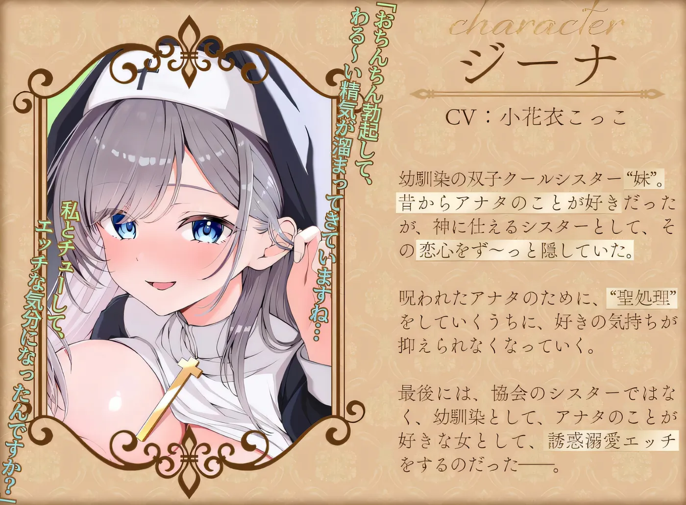 作品介绍通过超亲密的温柔圣疗,帮你畅快地释放下体哦 一边同时舔舐你的双耳,一边用下体夹着你的下体进行较量……■角色 吉娜 CV: 小花衣可可 儿时玩伴的双胞胎高冷姐妹中的 “妹妹”。 从小就喜欢你,但作为侍奉神明的修女,一直将这份爱意藏在心底。 为了被诅咒的你进行 “圣疗” 的过程中, 对你的喜欢之情渐渐难以抑制。 最后,她不再是以协会修女的身份, 而是以儿时玩伴、喜欢你的女人的身份, 对你进行诱惑与宠溺的亲密接触 ——。 「你的下体勃起了呢, 积攒了好多邪恶的精气呢…… 是和我接吻后,有了亲密的感觉吗?」 希尔达 CV: 西瓜水瓜 儿时玩伴的双胞胎高冷姐妹中的 “姐姐”。 和妹妹吉娜一样,非常喜欢你。 不过,她也一直将这份爱意藏在心底。 在进行 “圣疗” 时,她会在你耳边温柔私语, 让对你的喜欢之情溢于言表。 帮你解开诅咒之后,她也会和妹妹一起, 在你耳边说着喜欢你,和你亲密接触 ——。 「随时都做好了 “圣疗” 的准备哦? …… 来吧,告诉我你想要我怎么做。 你想让我怎么对待你的下体呢?」 ■概念「双胞胎高冷姐妹」× 「超亲密的温柔圣疗」×「诱惑宠溺的亲密接触」 虽然高冷,但却无比喜欢你的双胞胎姐妹, 会为了被诅咒的你宽衣解带哦 为了从你的下体挤出邪恶的精气…… ·同时舔舐双耳、同时用手撸管·用处女下体交合·夜晚裸身·口交 ·羞涩地一起洗澡时的乳交·下体三明治 3P…… 等等 用各种方式进行温柔圣疗 解开诅咒之后,和儿时玩伴双胞胎高冷姐妹的关系也不会结束, 等待你的是在被诱惑宠溺中亲密互动、不断呼喊着喜欢你的 3P 哦 ■故事突然醒来,发现自己身处协会。 眼前是儿时玩伴的双胞胎高冷姐妹, 她们看起来十分担心你。 听了她们的话才知道, 你似乎是被下了会积攒邪恶精气的诅咒。 要解开诅咒,就需要身体纯洁的修女, 也就是这两个儿时玩伴为你进行圣疗。 你虽然会对和从小就认识的她们进行亲密接触感到有些害羞……。 但双胞胎姐妹却很放得开,会和你超亲密地进行温柔的性治疗哦 概念图![]() ![]() 下载链接欢迎光临~ 哎呀,您还不是大会员呢 要给我『3 天空石』才能解锁链接哦 二次元资源尽在AcgFun! | |||||||||||