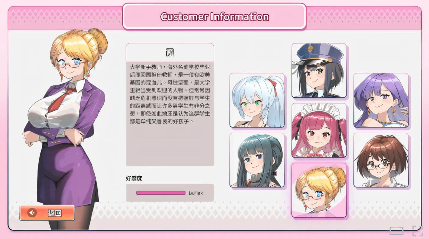 ![]() 游戏介绍《背德浴场》是一款融合多款小游戏的经营类游戏,为了被迫还债父亲欠黑社会的钱而顶让下经营失败的泡泡浴,进而改装的浴场来赚钱还债。并与这段期间的7位女性顾客邂逅,在以还债为终极目标的前提下体验当经营者与追求者的人生体验。 游戏概述您将扮演因情非得已患上怪病的男主角-龙司,为了被迫还债还被父亲下药导致每段时间都需要透过女性荷尔蒙接触的发洩来缓和病情。透过经营浴场的收入来加强改装店内装潢,扩展业务提供更多服务与提高评价来吸引更多消费类型的族群前来洗澡。 但是由于身体染上怪病,主角不得不在性慾高涨的时候进行处理,此时可以想办法以浴场老闆的名义吸引7位不同身分的女主角们前来消费,并进而培养感情进行更亲近的互动。 游戏玩法除了经营浴场赚钱以外,还有前往深山採取异世界植物进行特效药的製作高价贩售,以及其他各种赚钱管道进行资金的赚取。玩家可以在一天的四个时段当中前往各个区域与各式各样的人物进行交谈与互动,获取资讯与利益交换来提升自己的赚钱能力,获得更高的报酬利益与增加与女主角们的好感度。 龙司的怪病若不即时处理,过夜后隔天便会被推入急诊室紧急治疗,进而损失一大笔财富,甚至可能因病身亡,因此要随时注意他的生理状态以避免遗憾。 人物介绍龙司 本作男主角,是一位天才药剂师,因与医学院教授的女儿有所部染而被踢出医疗团队,同时又被迫接下父亲龙平的债务而顶下了「天龙浴场」的经营权。外表斯文帅气但满肚子坏水,为了目的不择手段,擅长社交互动又有不错的外表因而容易取得他人的信任。 加奈惠 (CV:鹤屋春人) 龙司的青梅竹马,自小跟天才药草学家-龙平学习药草学而拥有丰富的药草学知识,年纪轻轻就能独自并经营着代代相传的汉方药局。对龙司有浓厚的好感,个性活泼开朗喜欢和人斗嘴,常常在龙司最需要帮助的情况下无条件相挺协助,拥有朋友以上、恋人未满的关係。 琉美 (CV:喷太棒) 知名女画家,同人誌界的大手,因绘製的人物与插画极具商业价值,因此经济状况很不错。绘製速度快速,品质又高,因此接不接案全看她个人心情。个性较木讷寡言,完全的行动派。喜欢一个人独处,在浴场总是选择包厢浴场进行消费。 澪 (CV:蓝泽夏愈) 女僕咖啡厅红牌女店员,由于外观可爱,声音甜美,澪无论在哪里都是目光的焦点。虽然工作面很吃香,却受不了噁肥宅们的攻势,平常必须陪笑,勉强自己去迎合客人的调侃和下流眼神。因此上班后精神疲惫,会想找个下班后的绿洲休息。 霞 (CV:未来羽) 大学新手教师,海外名流学校毕业后即回国担任教师,是一位有欧美基因的混血儿。母性坚强,是大学里相当受到欢迎的人物,但常常因缺乏危机意识而没有把握好与学生的距离感而让许多男学生有非分之想,即使如此她还是认为这群学生都是单纯又善良的好孩子。 早苗 (CV:飴川紫乃) 新婚人妻,由于老公是非常成功的创业家,因此常常出差不在家,妻子虽然有优渥的生活条件但仍然觉得生活很无趣,因此喜欢去澡堂跟其他人妻团聊天。但由于本身条件不错,常有人搭讪。因此欲求不满也是相当明显的,每天都在幻想着被男人们欺负。但又矛盾的坚守着自己是有已婚人士了,必须要洁身自爱。 彩子 (CV:水野七海) 女警。工作上,她严肃专业,对待犯罪分子毫不手软。然而,在内心深处,她隐藏着一个不为人知的一面,那就是她对某些禁忌事物的好奇和探索。她是个非常守纪律的人,对于自身为民服务深感荣幸。 美树 (CV:北板莉亚) 风俗女子,她的身材火辣,曲线玲珑,总是穿着时尚且引人注目的衣服。性格开朗,温柔且善于与人交际。她拥有一种难以抗拒的魅力能轻易地让人放下戒备心。因此在本业进行工作时她能够迅速捕捉客人的需求,提供他们渴望的服务,然而,她也有着一颗善良的心,经常会在暗地里帮助有困难的人。 游戏截图![]() ![]() ![]() ![]() ![]() 下载链接欢迎光临~ 哎呀,您还不是大会员呢 要给我『3 天空石』才能解锁链接哦 二次元资源尽在AcgFun! |